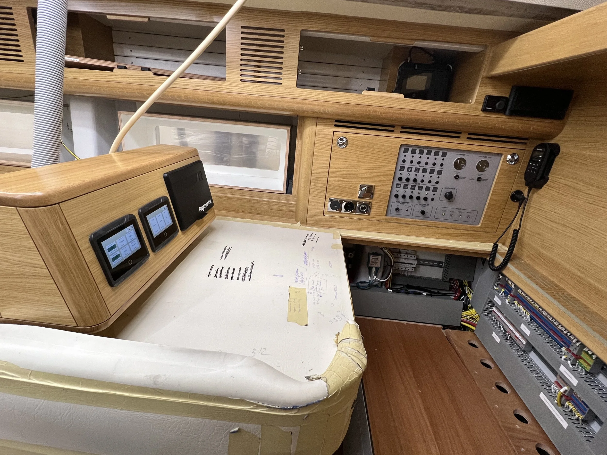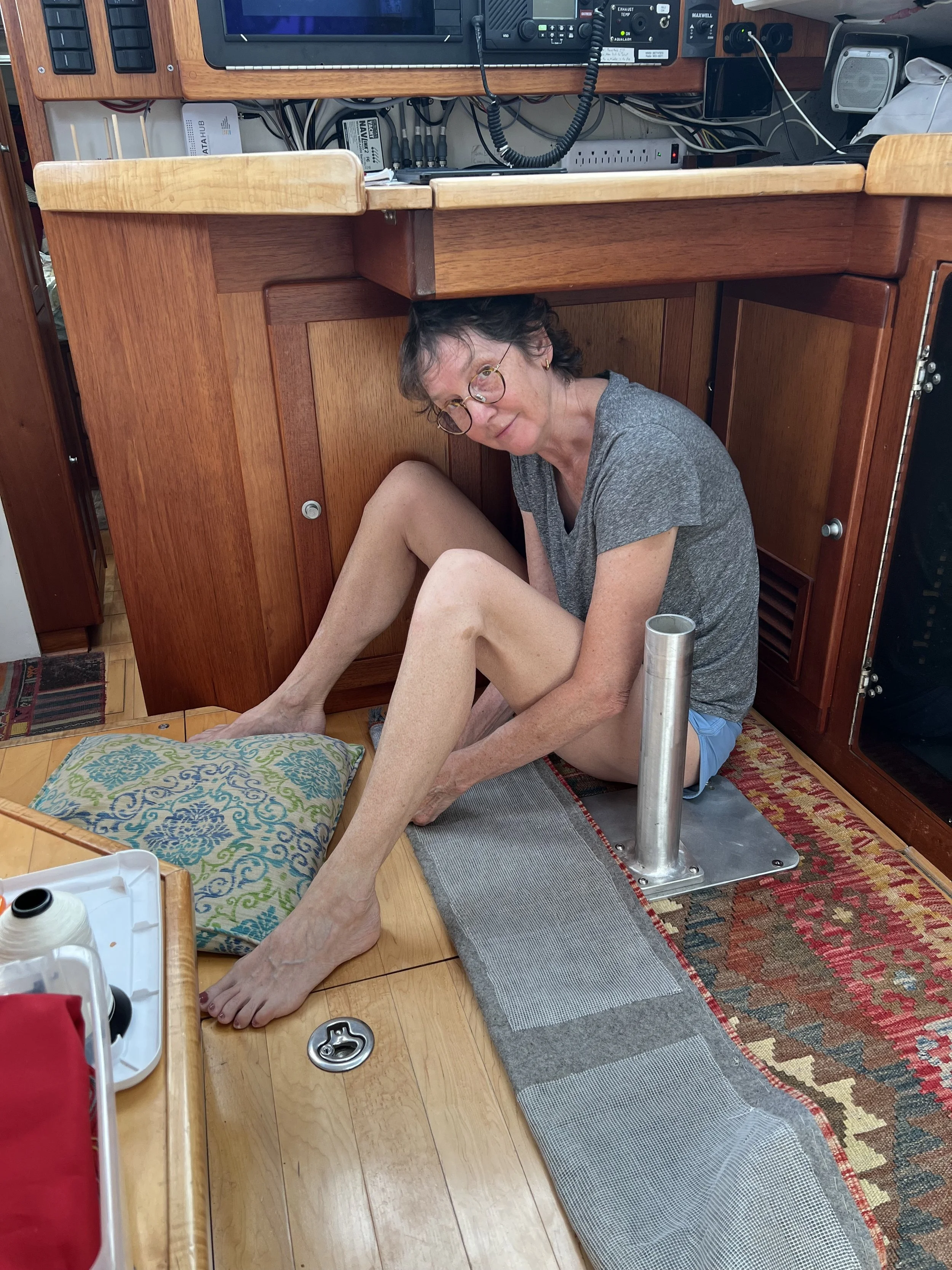 More boat jobs keep Brian busy. A new shelf for storage boxes so they can be strapped securely while underway. A new hydronic heating system installed. The Eberspächer system was gifted to us by Hilary, unfortunately no longer a boat owner so she had no need for it. With a little TLC it was encouraged into life, and now we have not only a backup heating system, but one we can safely use while underway.