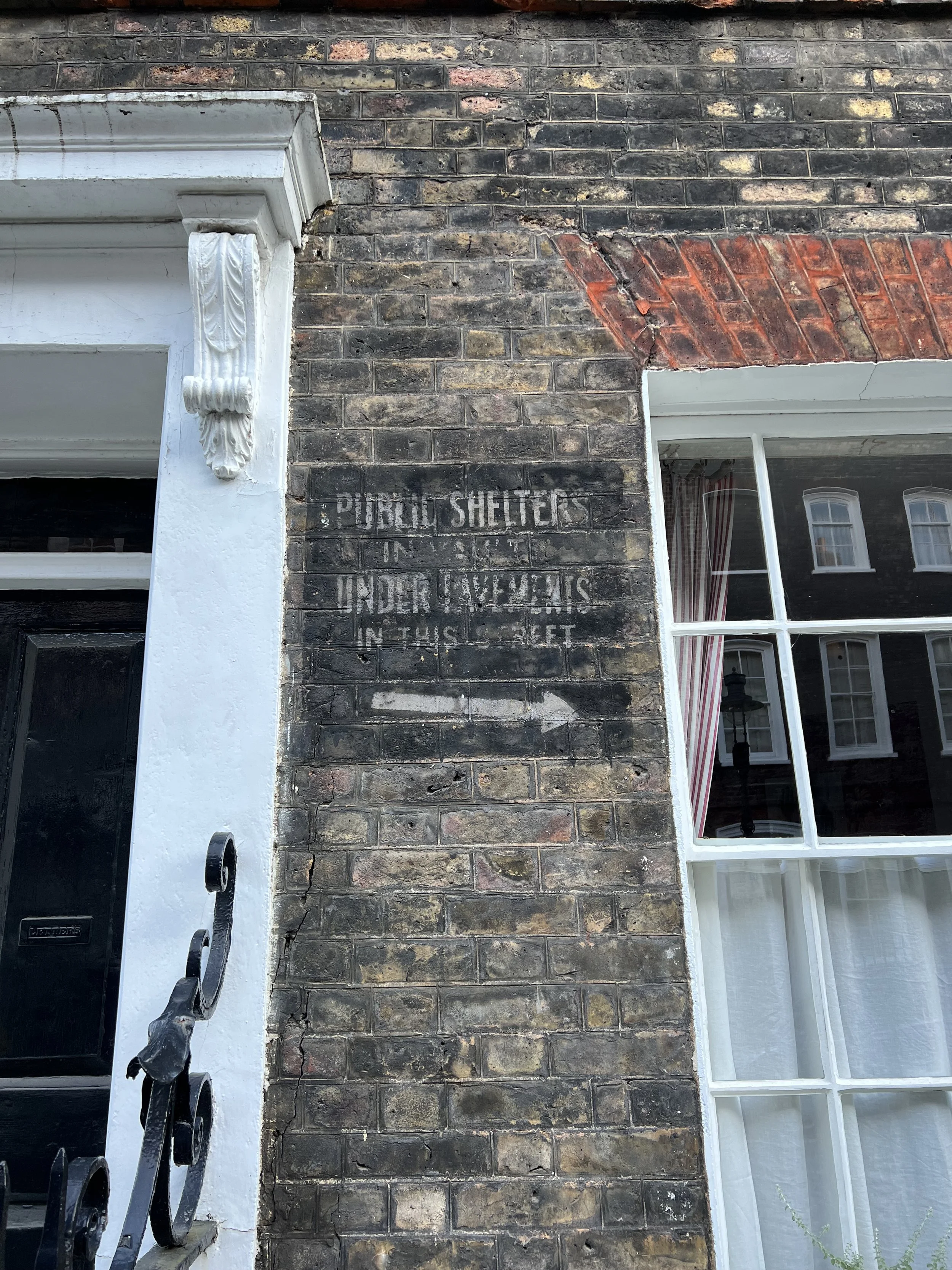 Walking the backstreets behind Westminster Abbey we discover the rows of exclusive Georgian townhouses, residences of the wealthier government officials and people of note. The faded sign indicating where the air raid shelters were located was painted right on someone’s wall. Sometimes, when visiting a big city, you just have to be a tourist. We did that, checking out the horse guards and the original Scotland Yard.
