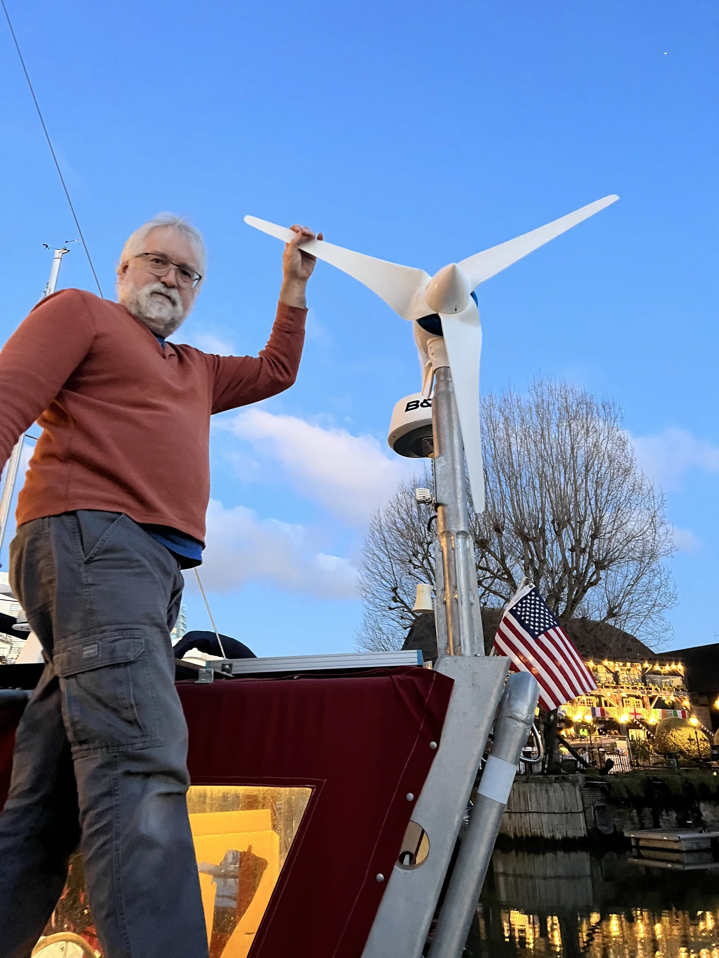 It is beginning to feel a lot like Christmas. The street decorations are all up and St Katherines dock is sparkling. We celebrate Thanksgiving onboard, just us two. Brian is starting some major boat work, involving taking out walls. Not a boat I want to share with guests. But more on that in the next installment.