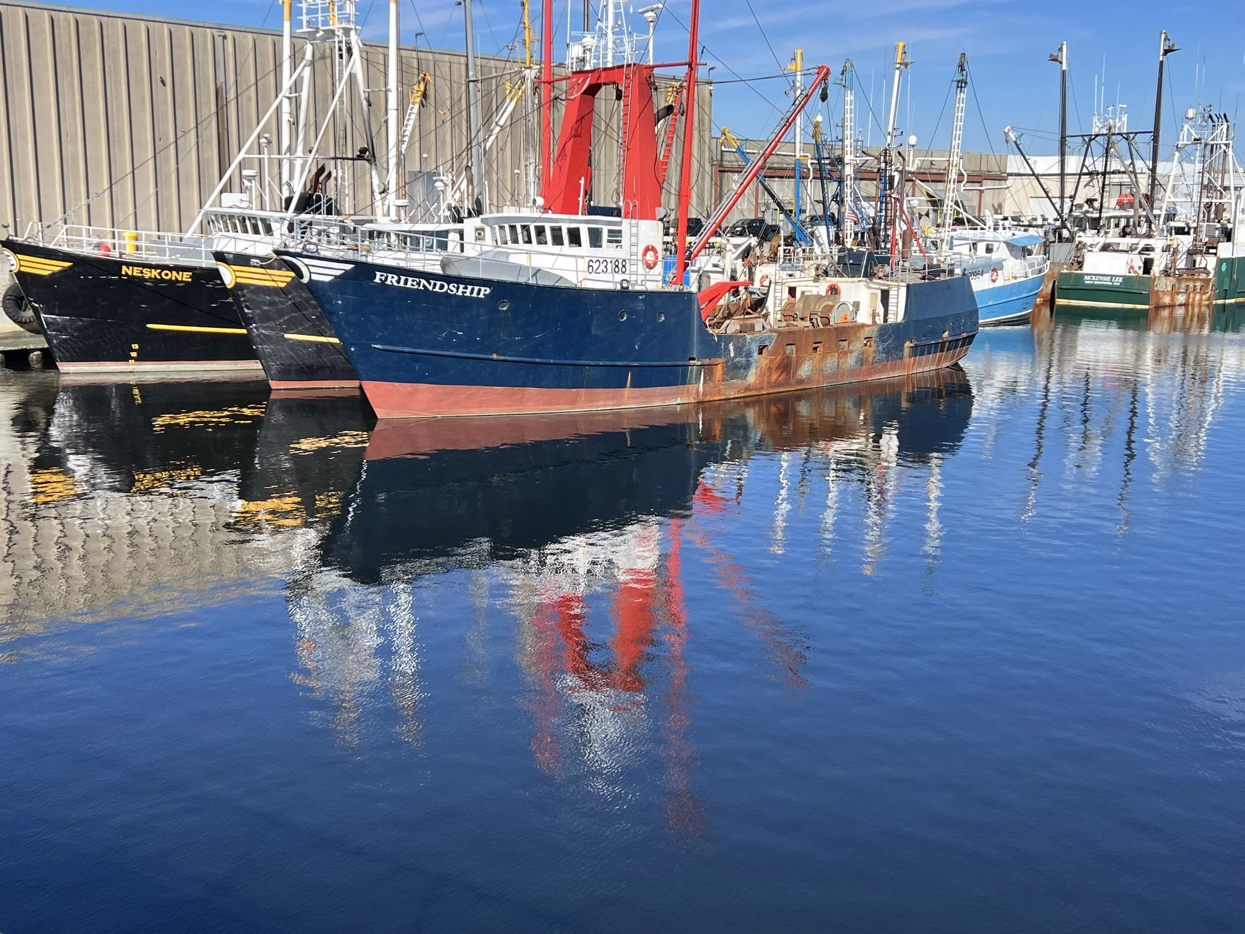 New Bedford is a working town, a large fishing fleet is based here and the deep water port, protected by storm gates, is perfect for the growing (hopefully) wind generator industry.