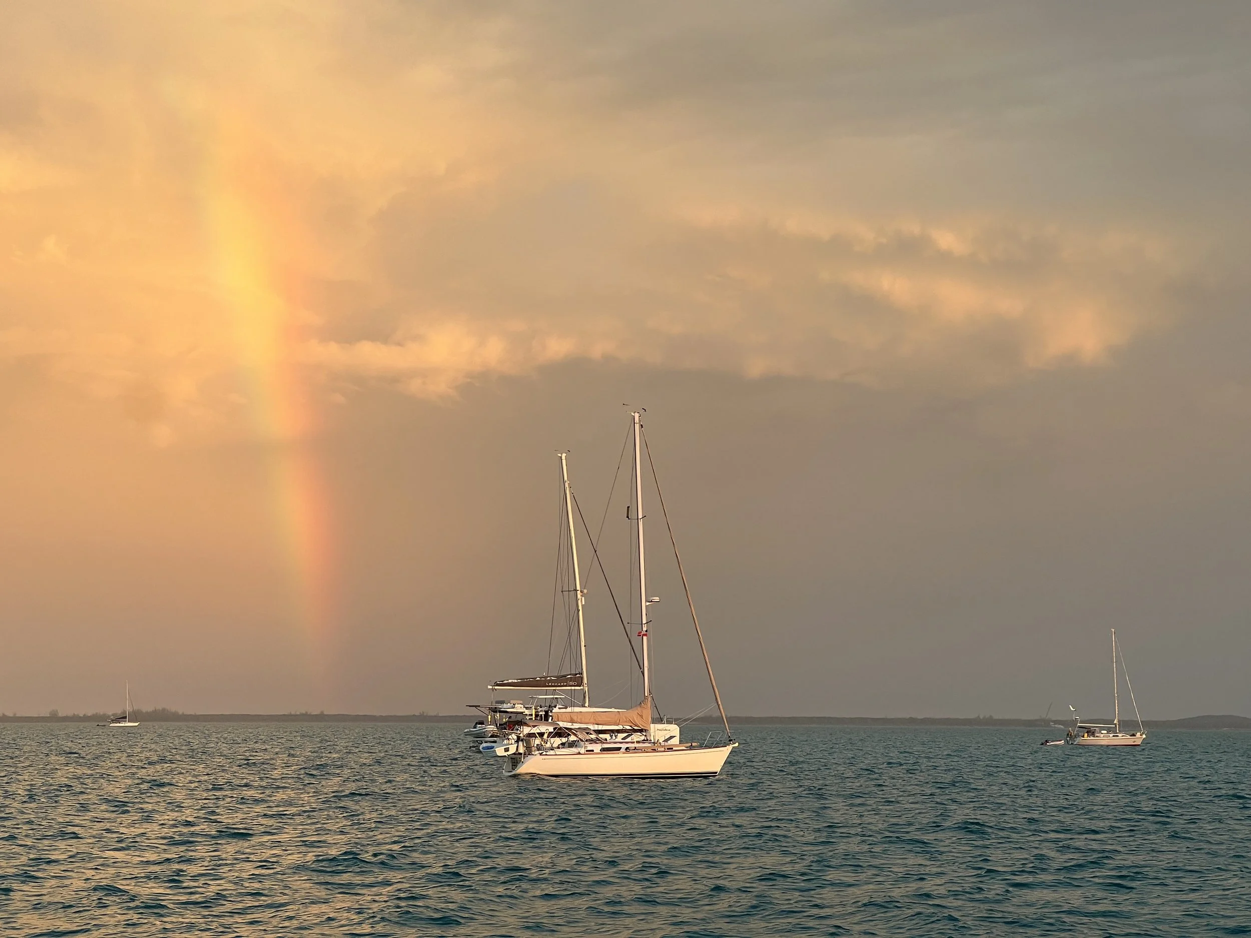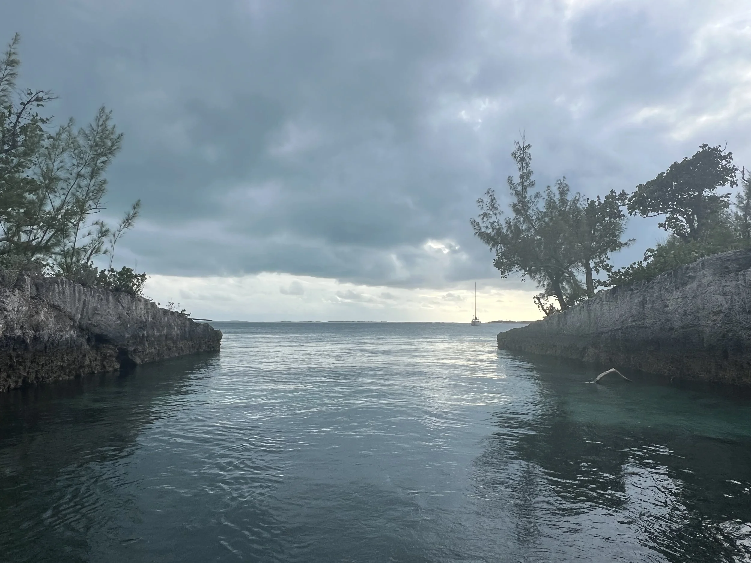 We left Spanish Wells and headed south, timing our passage through Current Cut at the end of the flood. Even then we raced through with the current assist at 9.5kt. Just south of the cut is Current Island, a decent sized mass of land, with a small bluff we could tuck in behind. The water, unlike most of the Bahamas, was of good depth close to the shore, so we could anchor without a long fetch in front of us, reducing the chance of waves building up. It was the perfect spot, or so we hoped. We were in company, not surprisingly, as there are not many places to shelter from a west wind, but the anchorage was far from crowded and everyone had plenty of breathing room. And then we waited for the winds to arrive.