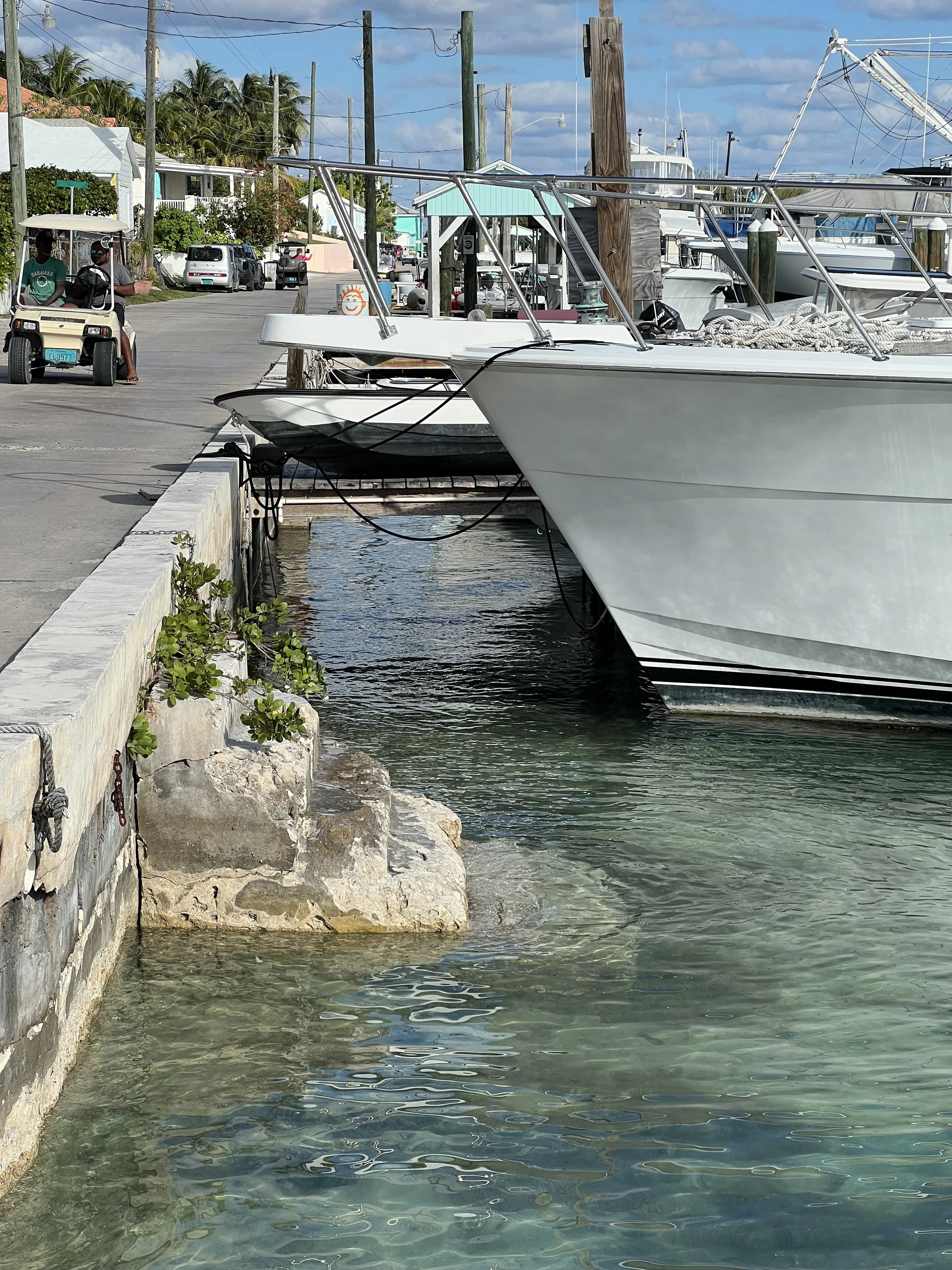 The southern side of Marsh Harbor was our next stop, not particularly scenic, but close to a boatyard where we had read we could leave our dinghy securely for a $10 fee and was a short walk to the grocery store to top up the ship’s supplies. After the storm passed we went in to check it out. Well, inflation is seriously out of hand here, the dinghy docking fee was $27.50. We paid up, but grumbled a good bit. No returning just to take a walk or sightsee.