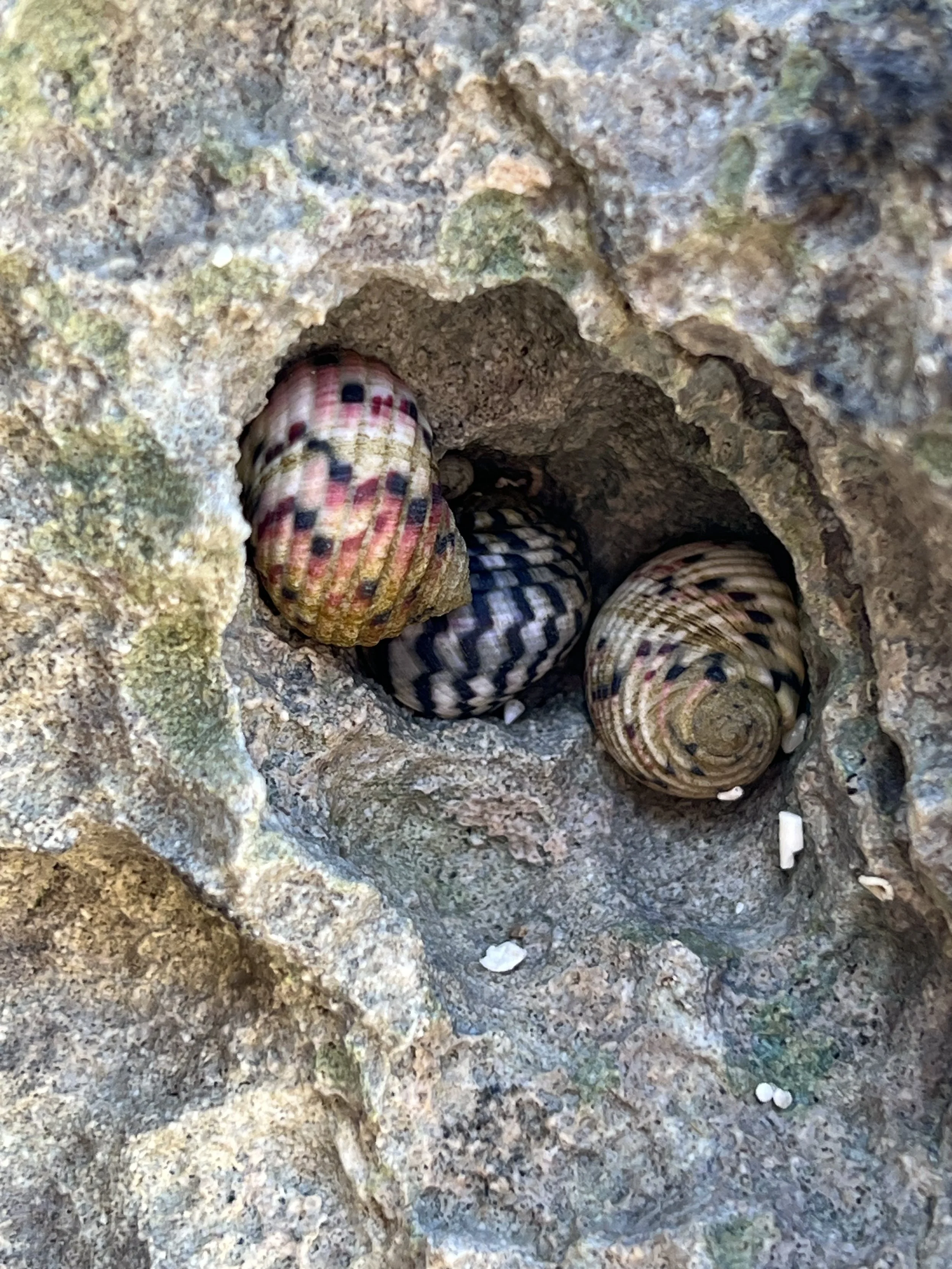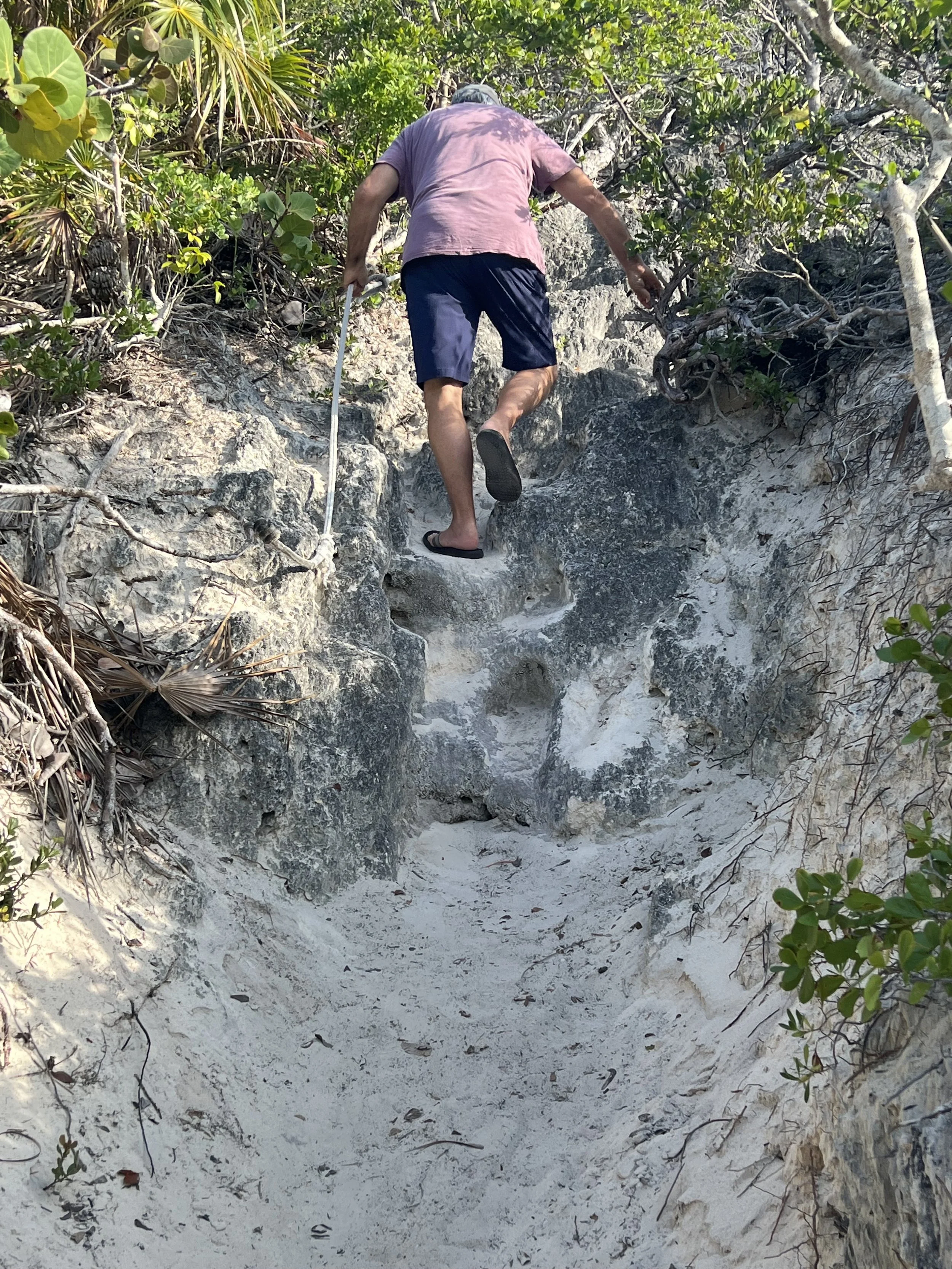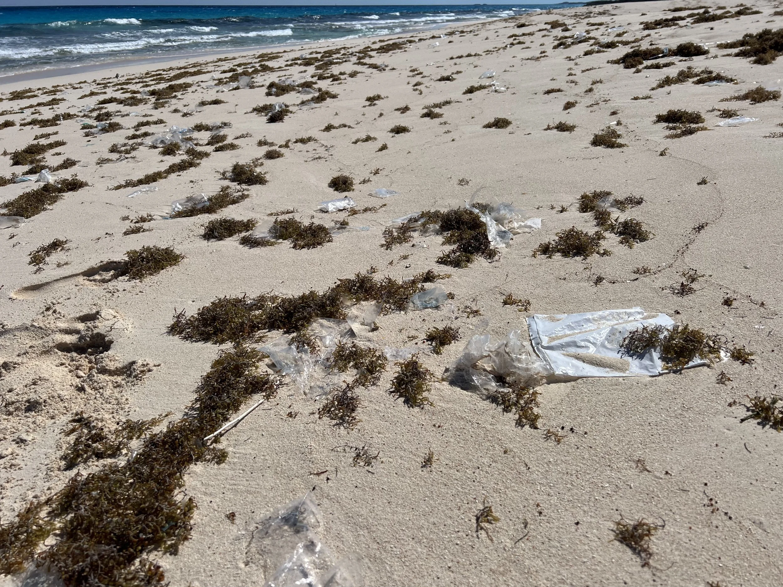 The shoreline on the windward beaches of these Cays are made from wickedly sharp eroded limestone. Almost impossible to walk on and the thought of being shipwrecked and tossed onto them after a storm is frankly terrifying. Here the few scraps of vegetation were covered in small whelks.