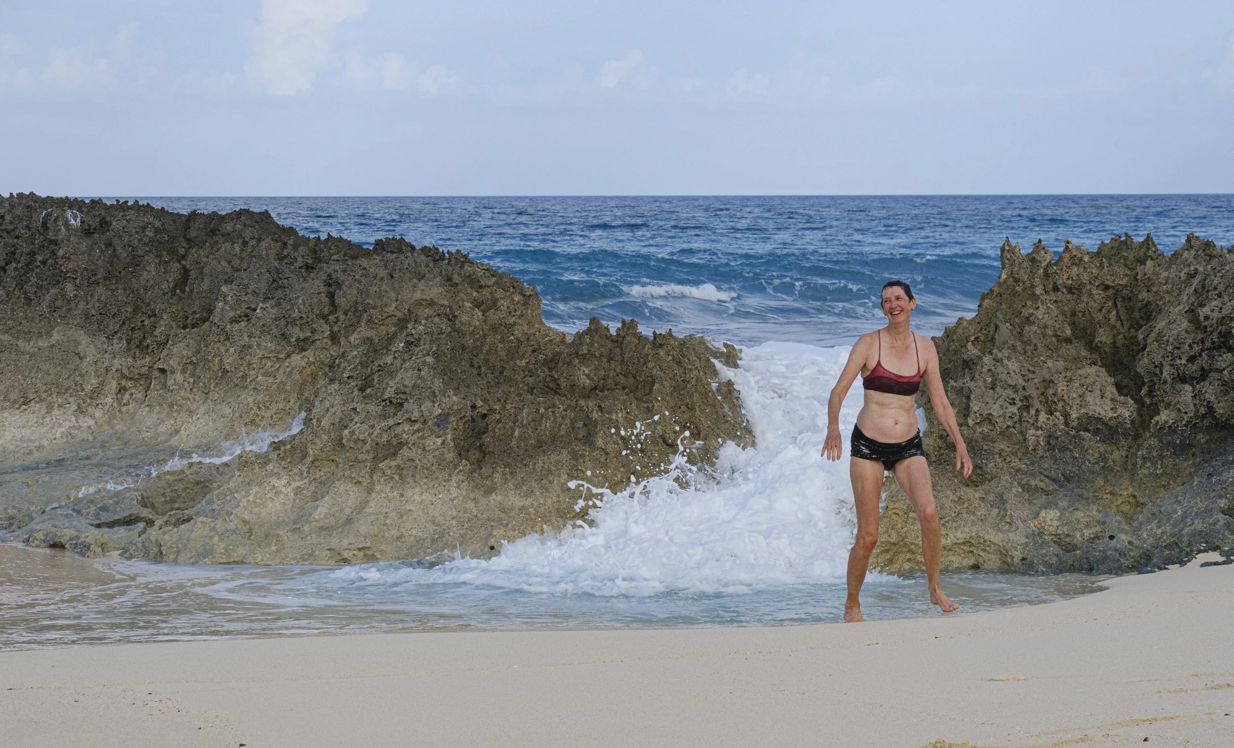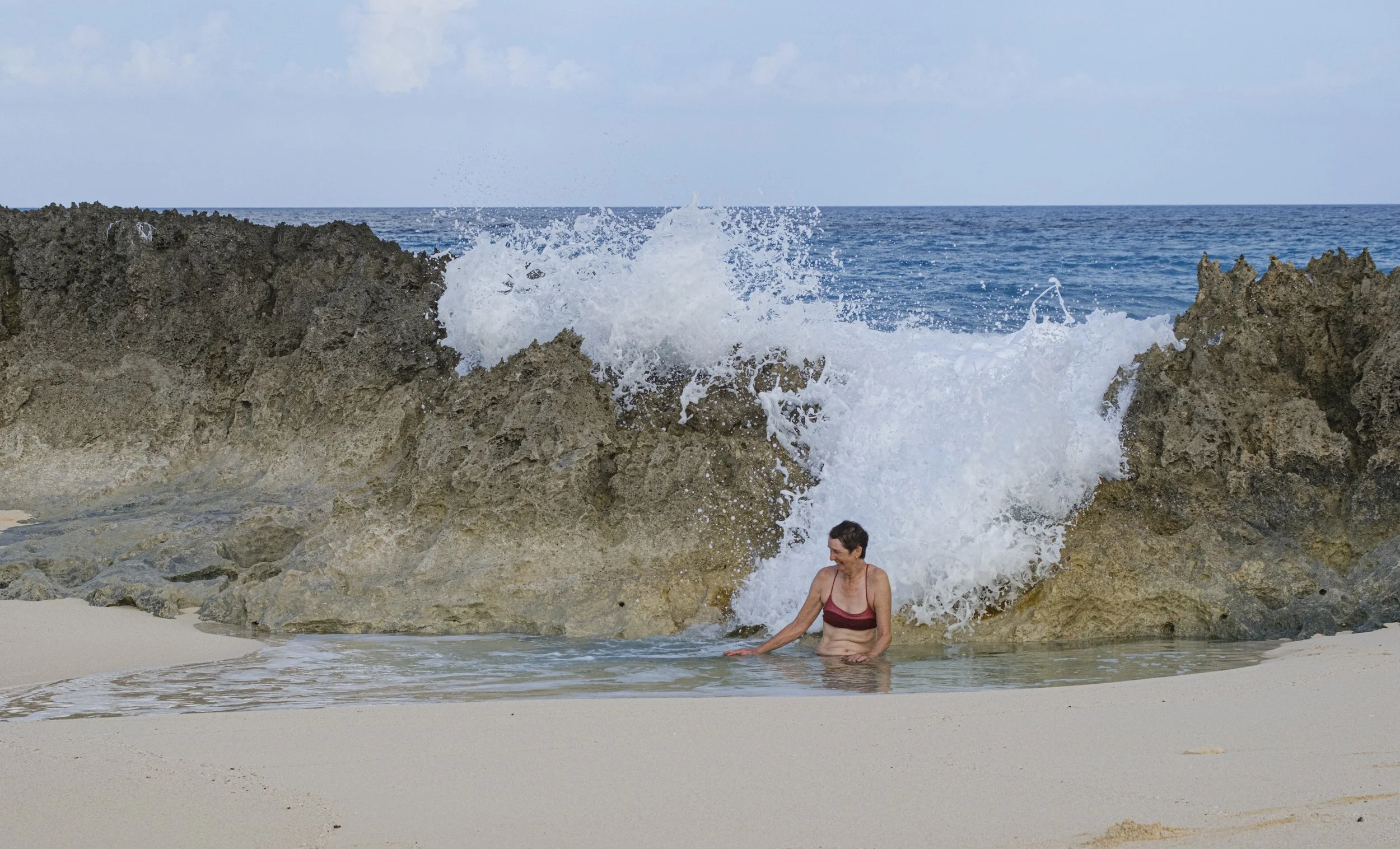 One favorite spot was called Bobin’s Bath, a pool sheltered from the strong surf by a rocky reef wall, but at high tide waves would occasionally wash over the rocks providing a refreshing shower.