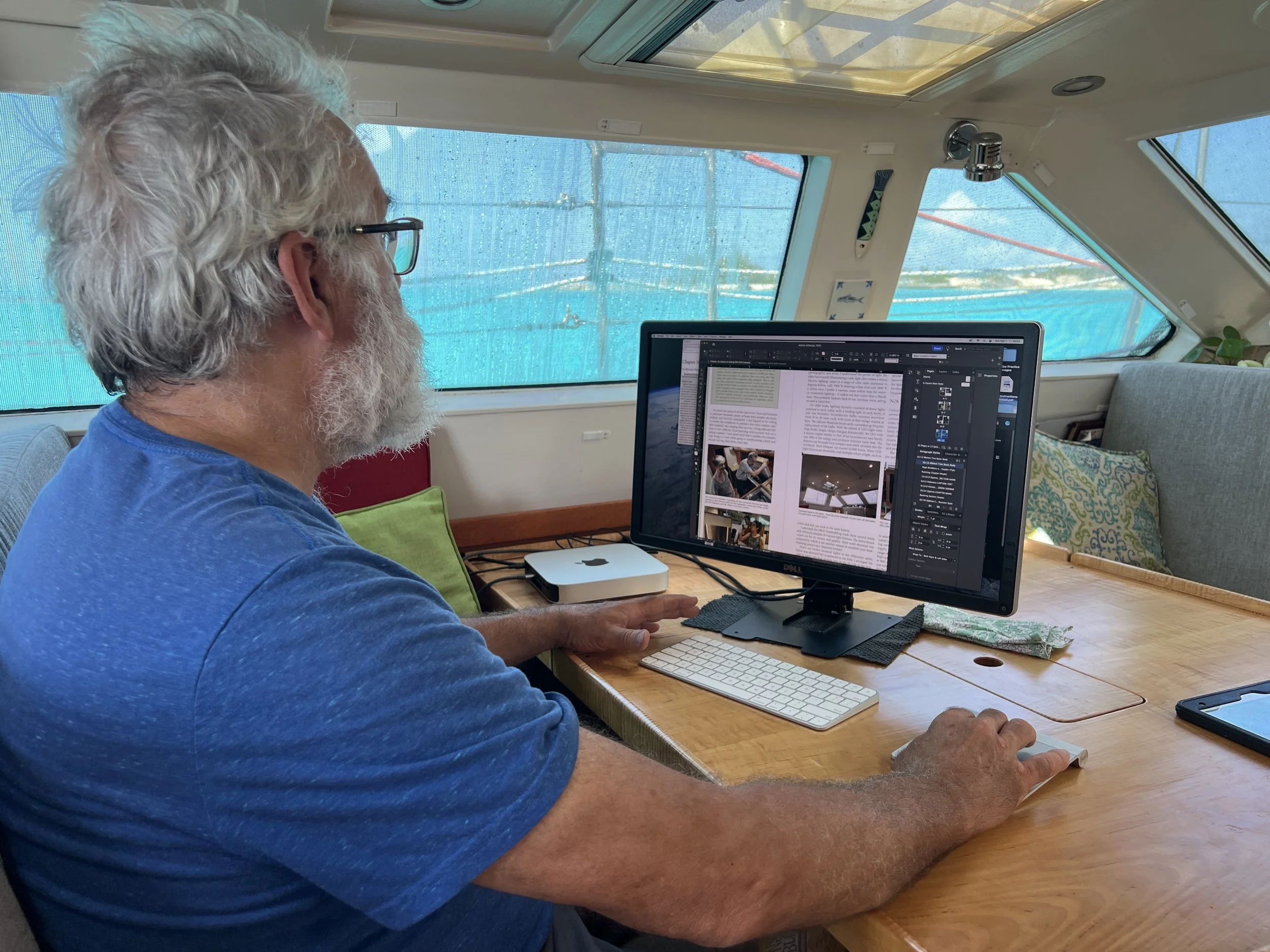 Some art was made for the cabin walls, and Brian worked diligently on his boat building book. He says it will be ready really soon ….. I do hope so!