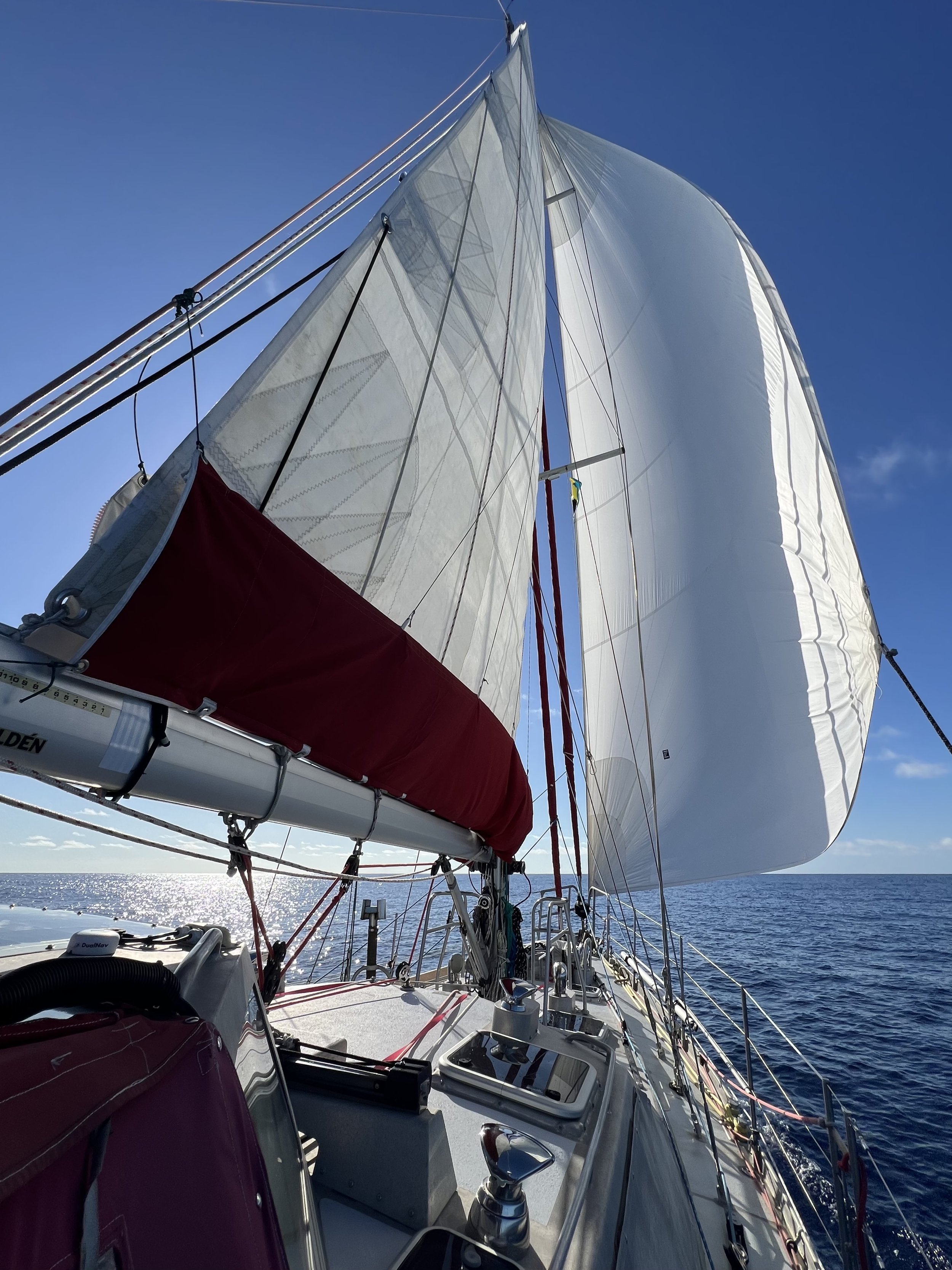 Helacious sailing into the sunset. Photo courtesy of Jacob and Anneke on SV Kim.