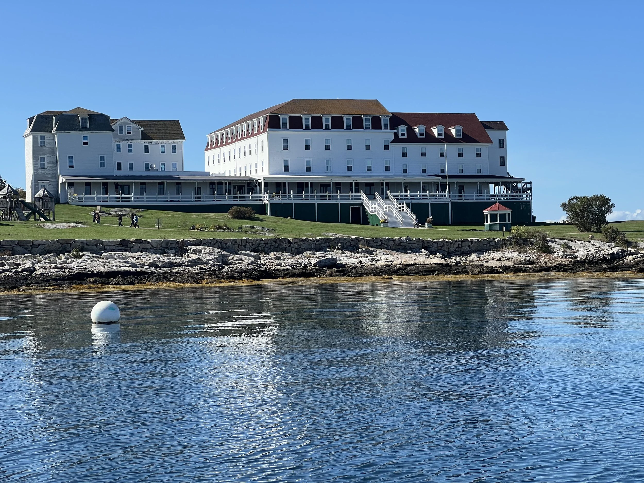 Arriving back in the USA after nearly 2 years absence was interesting. Oh my! Still the land of plenty, despite the tariffs. We made landfall at the Isles of Shoals, a small archipelago just off the coast of southern Maine. We picked up one of the free moorings in the harbor, next to the delightfully named Smuttynose Island. The next morning we went ashore to stretch our legs and check out the Oceanic Hotel – it reminded us of “The Shining”.