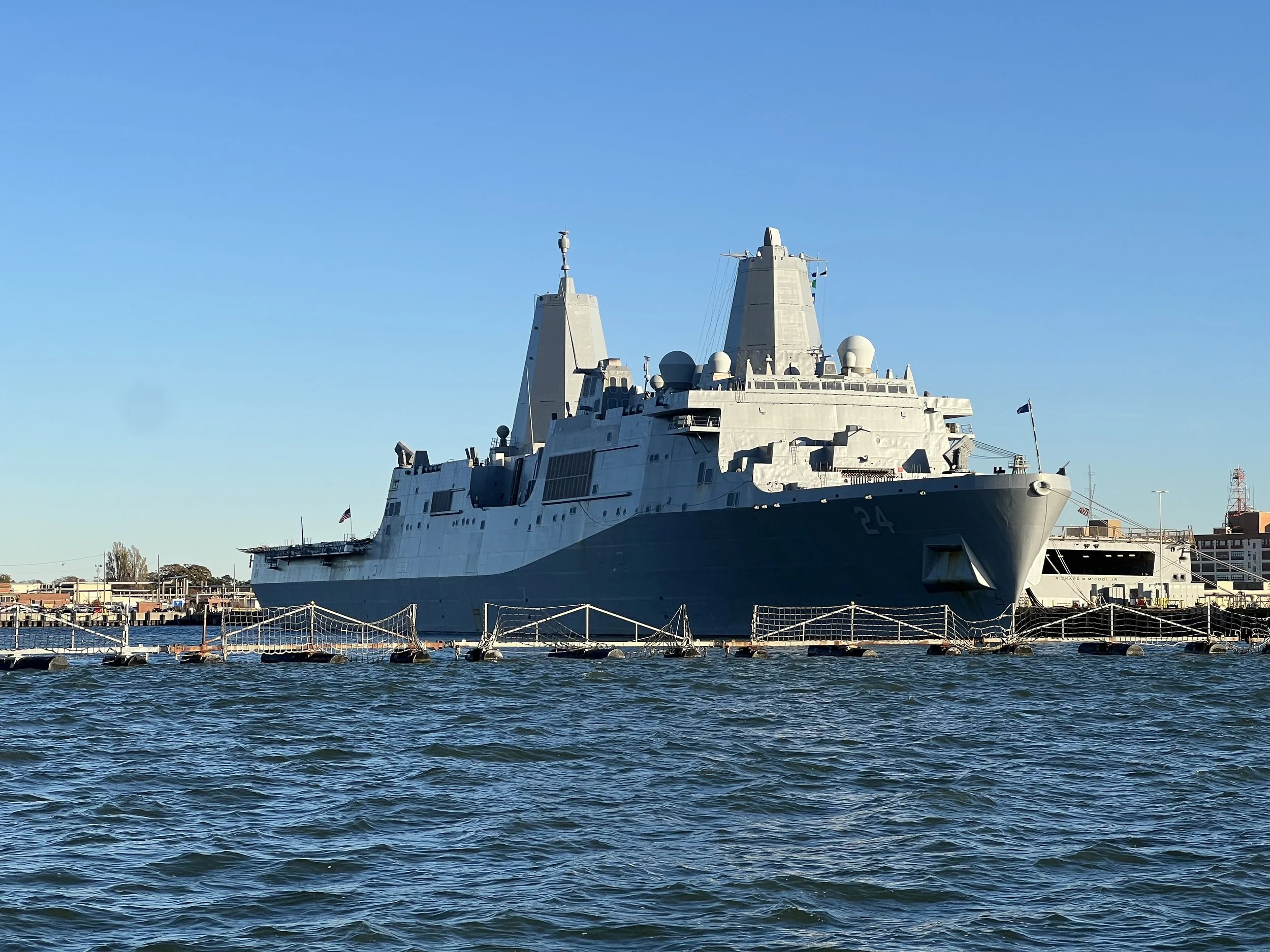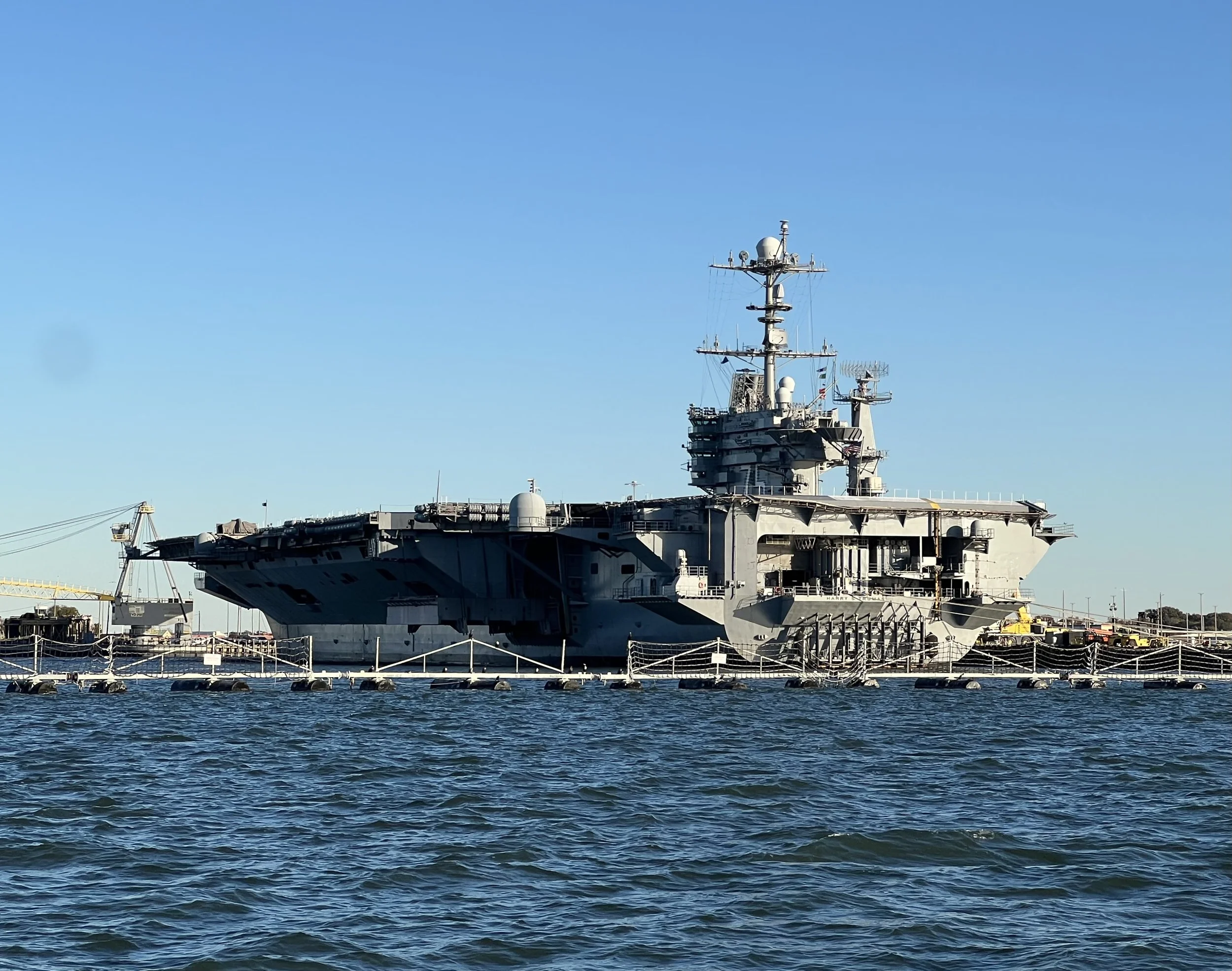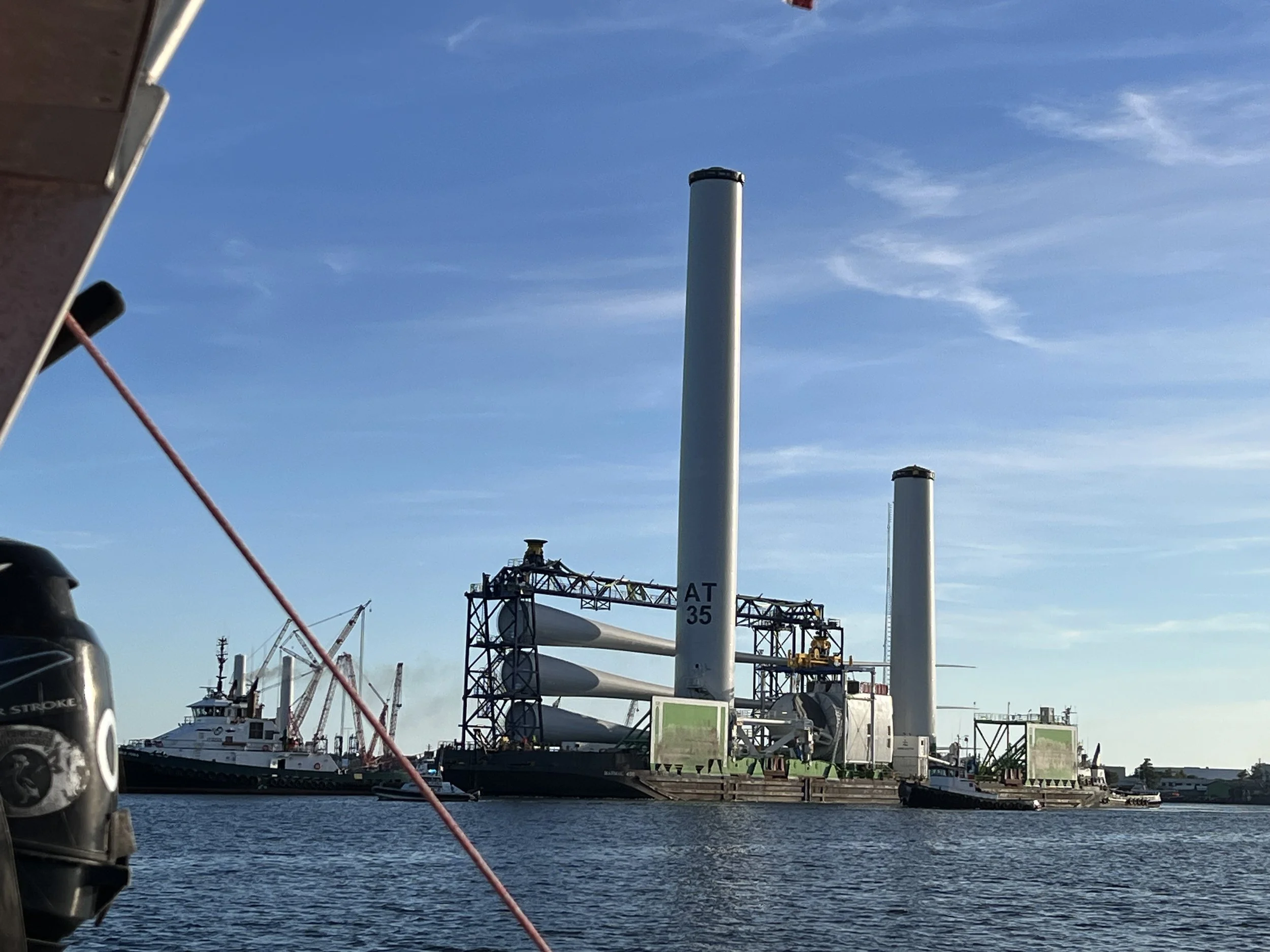 After a few days we arrive in Norfolk, at the southern end of Chesapeake Bay, ready to enter the sheltered waters of the ICW. Passing the many impressive Navy ships, we wondered what each specialized vessel was for. The cranes and gantries of the container port and the parts of wind farms waiting to be shipped out was an interesting mix.