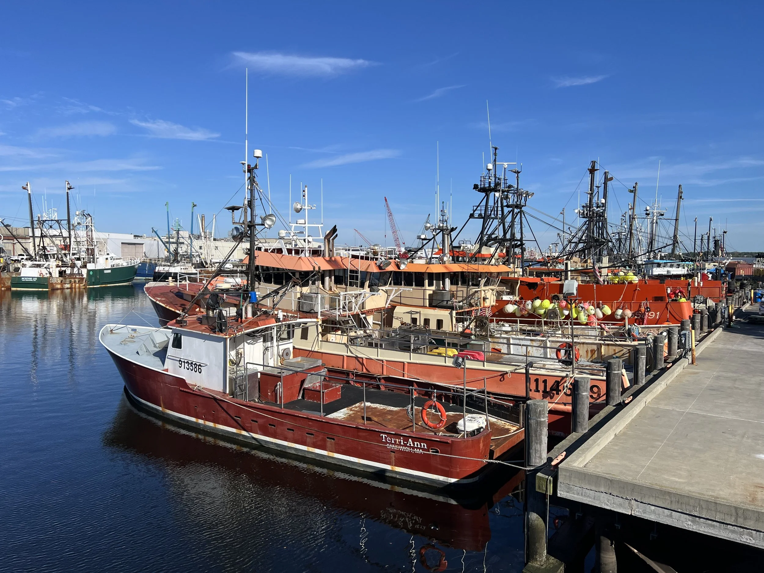 New Bedford is a working town, a large fishing fleet is based here and the deep water port, protected by storm gates, is perfect for the growing (hopefully) wind generator industry.