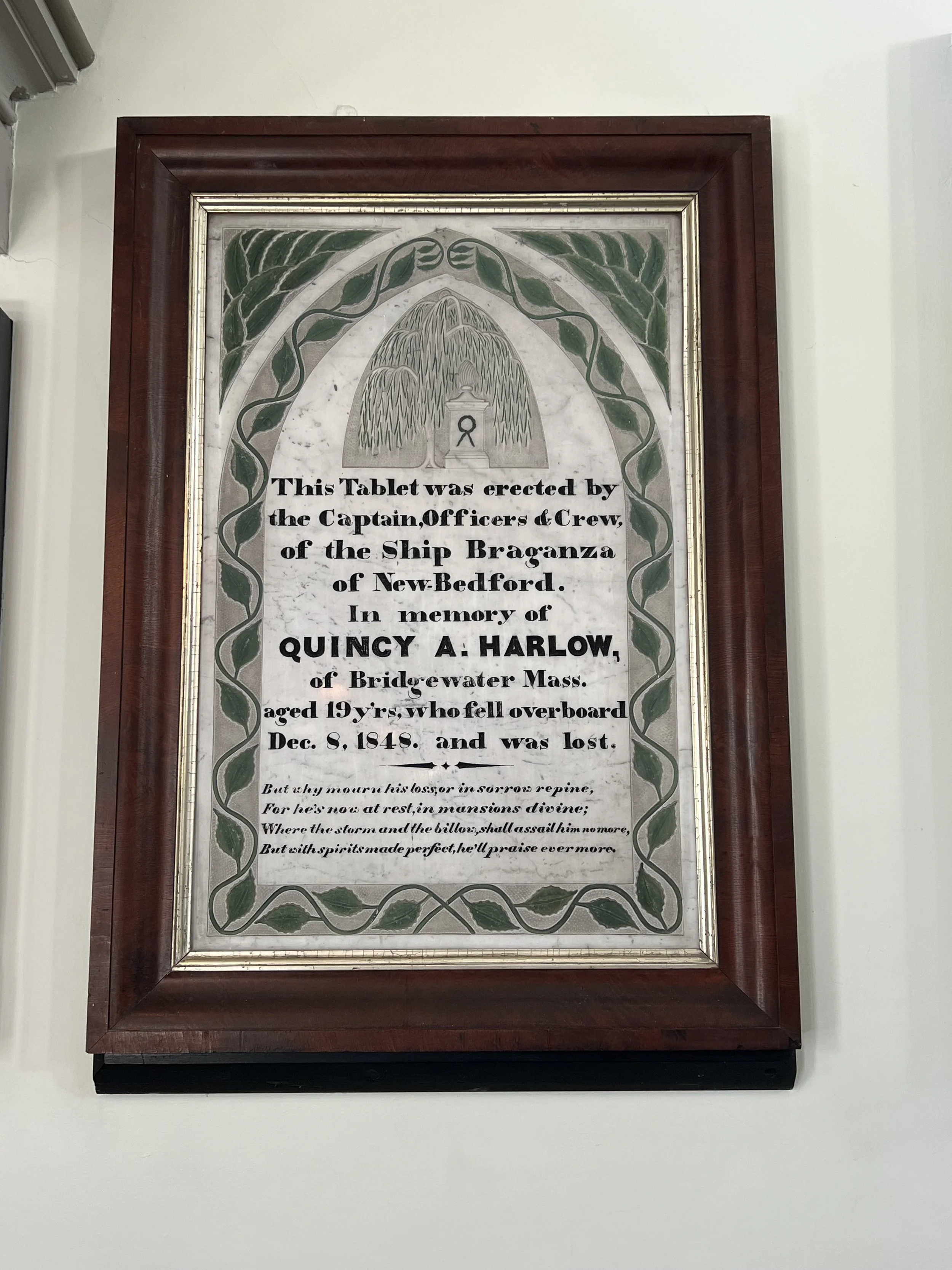 In addition, Herman Melville set out on his voyage upon a whaling ship from New Bedford, the experience he used in his writing of the novel Moby Dick. The Seamen’s Bethel, a chapel for seamen to use while onshore, has a pew he supposedly frequented along with an impressive pulpit. The plaques all along the walls told of some brutal times and unpleasant ends.