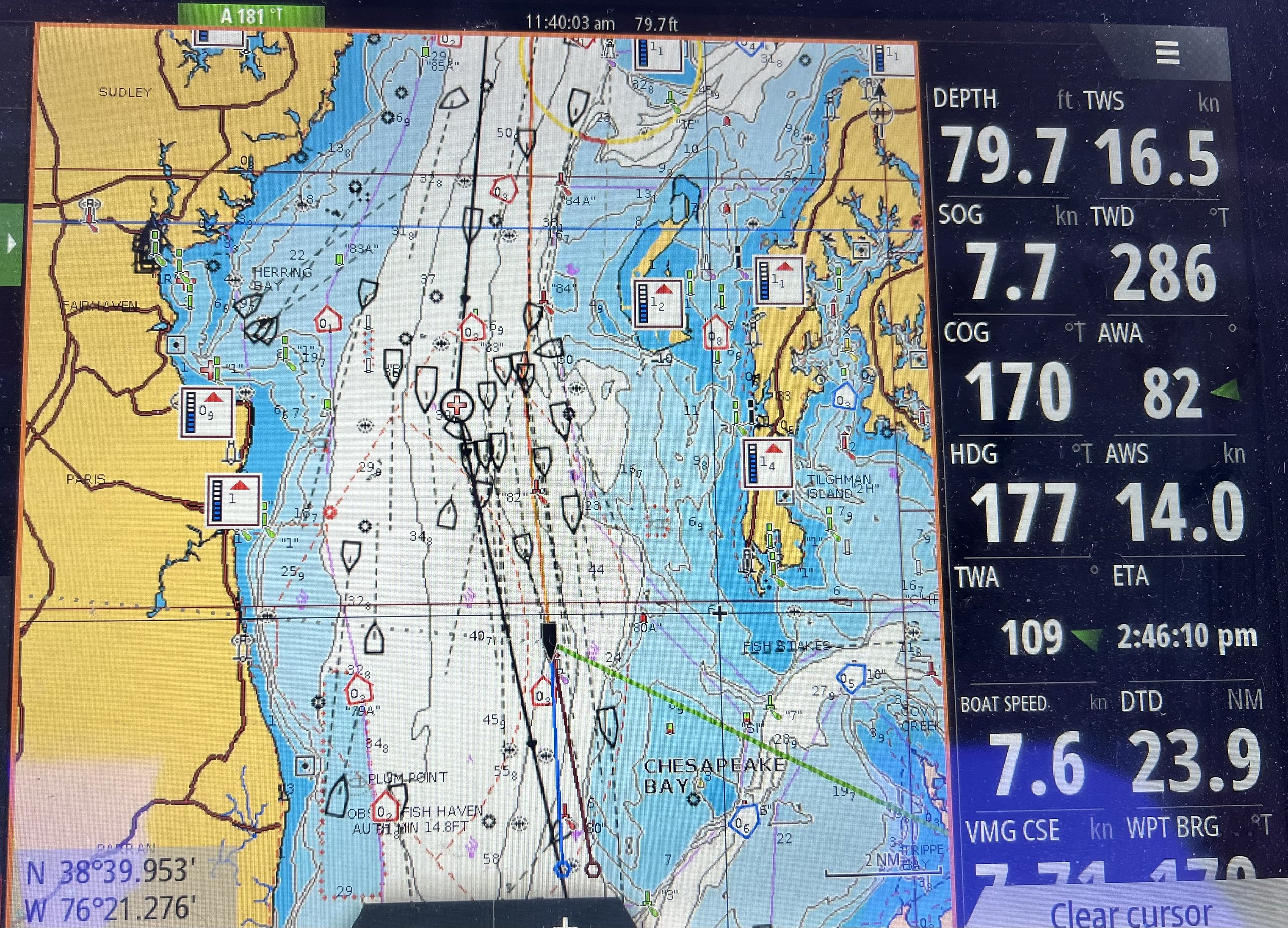 We had timed our departure from Block Island to arrive at the entrance to Delaware bay at the turn of the tide. We nailed it. Arriving at slack, we rode the tide all the way up to the C&D canal, managing to reach Chesapeake City for the night. Despite its grandiose name, there is not even a grocery store there, and we were a little low on supplies. A nasty storm was approaching; we hunker down for 3 days in the entrance to Sassafras River, raiding the deep storage for crackers and tortillas to keep us going.