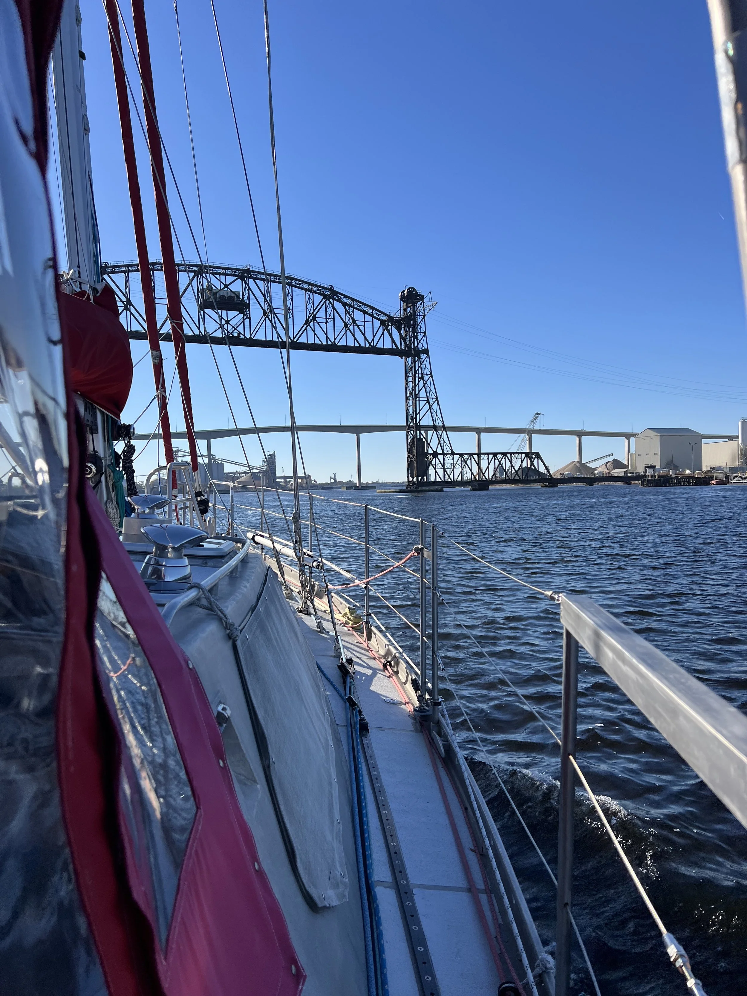 The next morning we head out, passing under the first of many bridges on our way down the ICW.