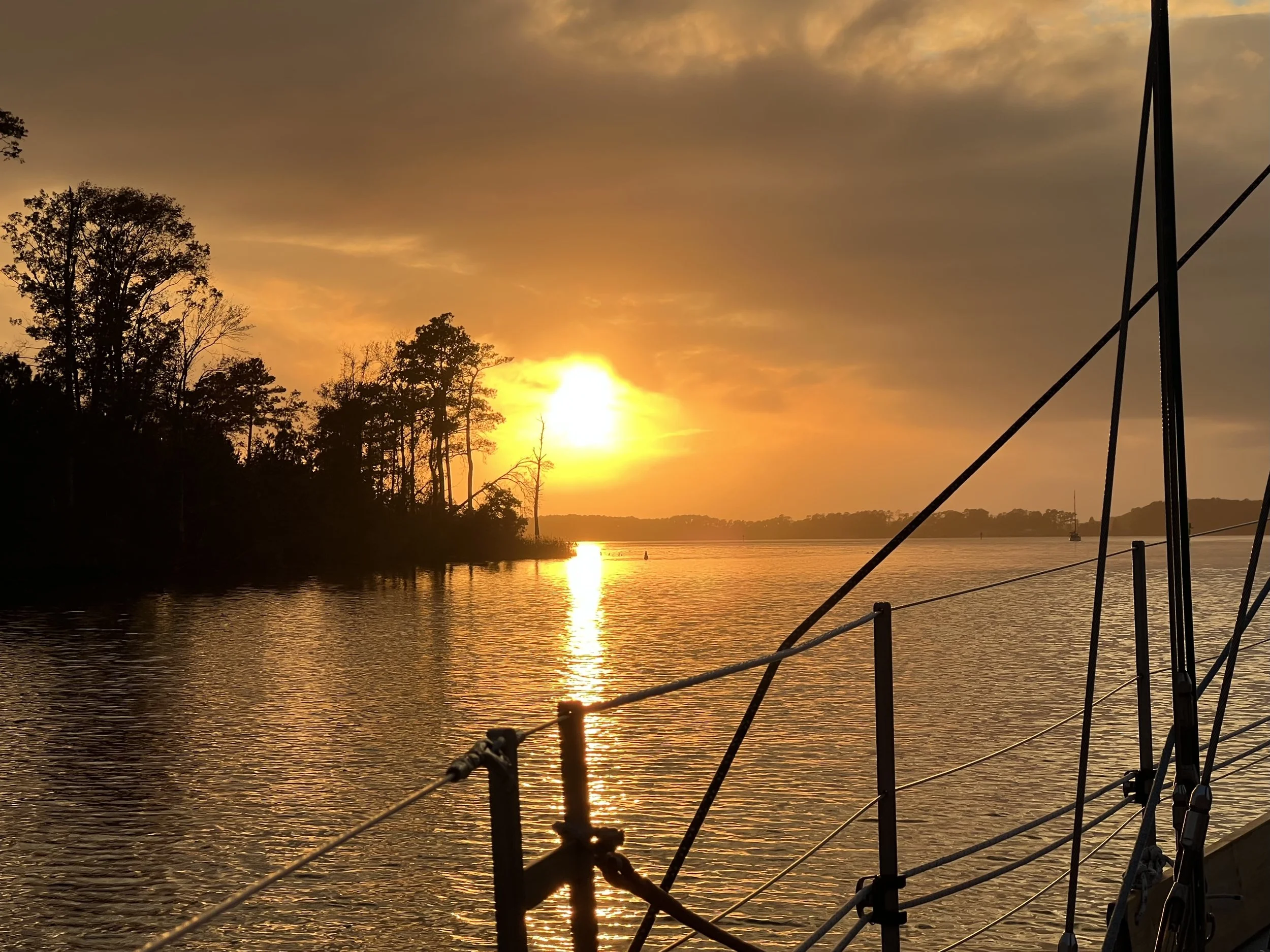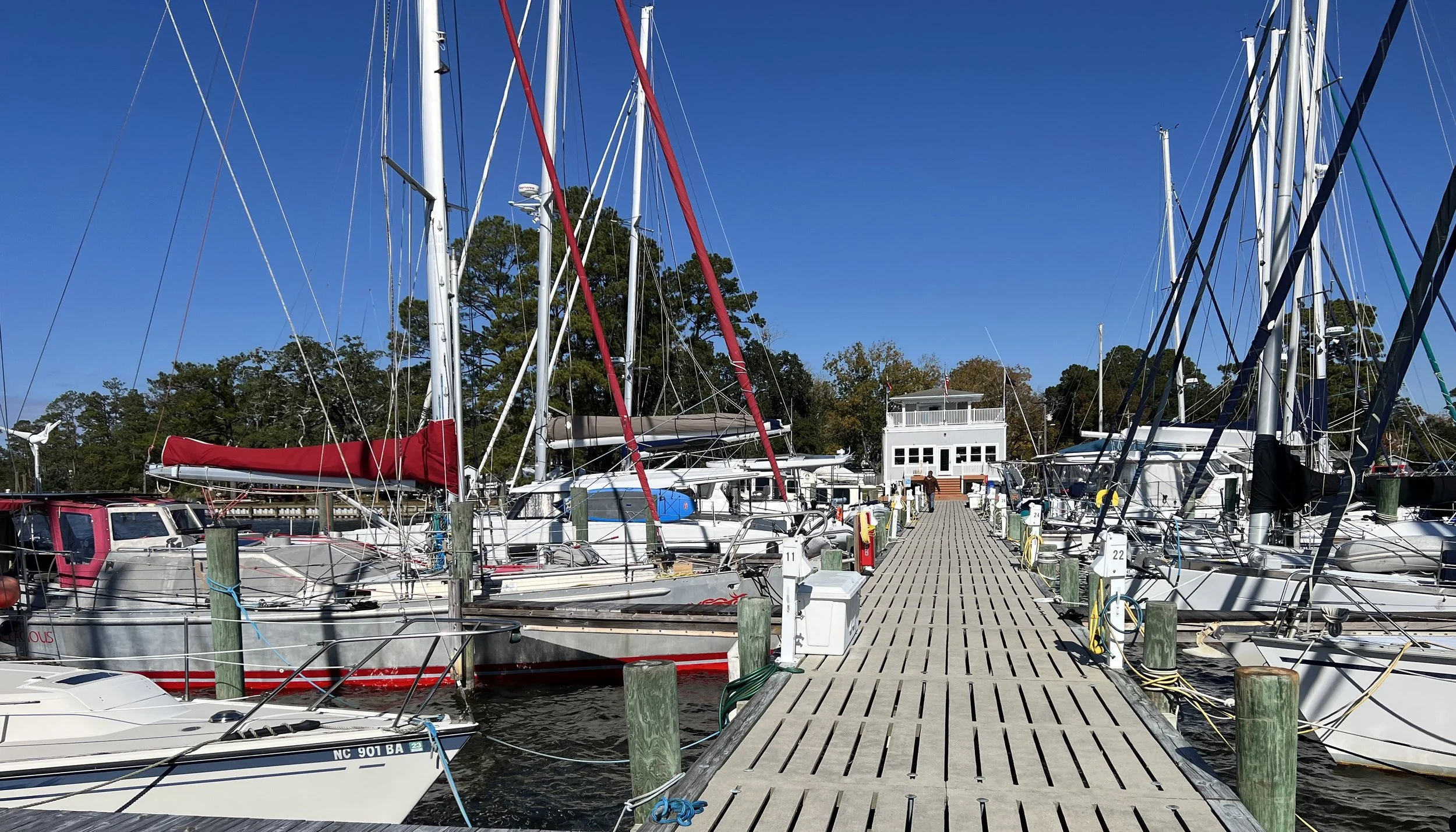 We arrive in Broad Creek, near Oriental NC. There is a small marina where friend Mads and Ava, who we first met in Å Coruna, Spain over 3 years ago, currently have their boat. It was off the beaten track and well sheltered, a perfect place to leave Helacious under a watchful eye while we go for a quick visit back to our home in Memphis.
